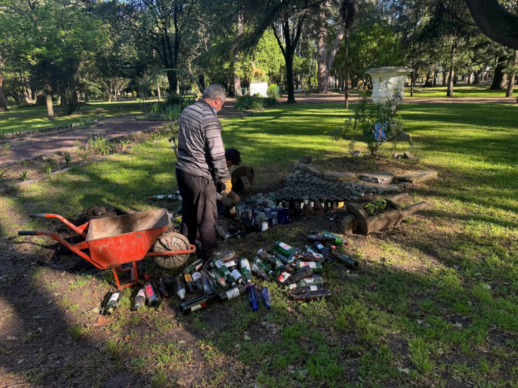 Al respecto, el subdirector del Parque Hernán Godoy destacó que “estamos trabajando con elementos que la gente ha ido descartando en el Parque, en este caso botellas a las que les damos un nuevo sentido para formar caminos. Además de contribuir al reciclado, quedan muy lindas desde lo estético”.